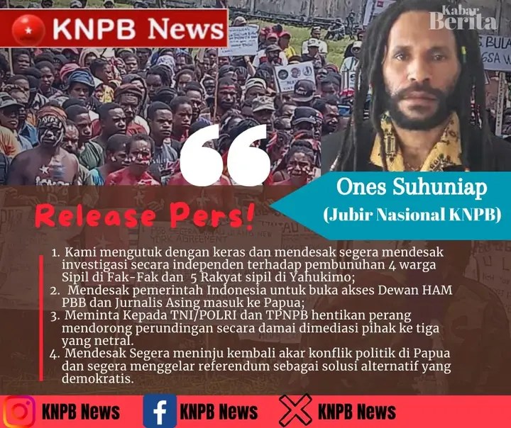 Dengan demikian Kami Komite Nasional Papua Barat KNPB atas nama kemanusiaan dan keadilan menyampaikan pernyataan sikap sebagai berikut :