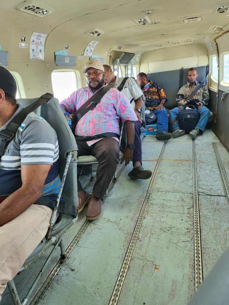 Dengan menumpangi pesawat jenis Caravan milik AMA, Paul Mabel dan rombongan terbang dari Jayapura menuju bandara Danowage. Ikut dalam rombongan itu, Kasubag Evaluasi Kinerja Pemerintahan Denius Uropkulin, Kasubag Bina Administrasi Pemerintahan Distrik Moritz Lombogia, S.STP, Kepala Distrik Awinbon Barnabas Tamaka bersama stafnya Kitok Kakyarmabin, Sekretaris Distrik Kawor Sitbik Kalakmabin.